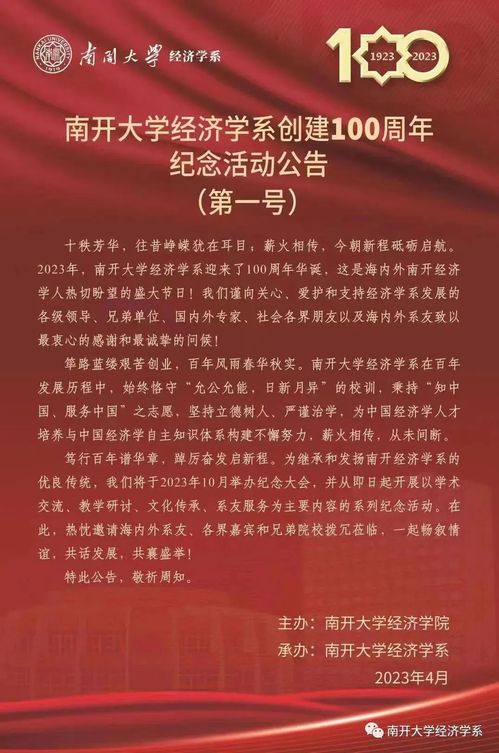 太阳成集团tyc4633经济学系创建100周年纪念活动公告(第一号)