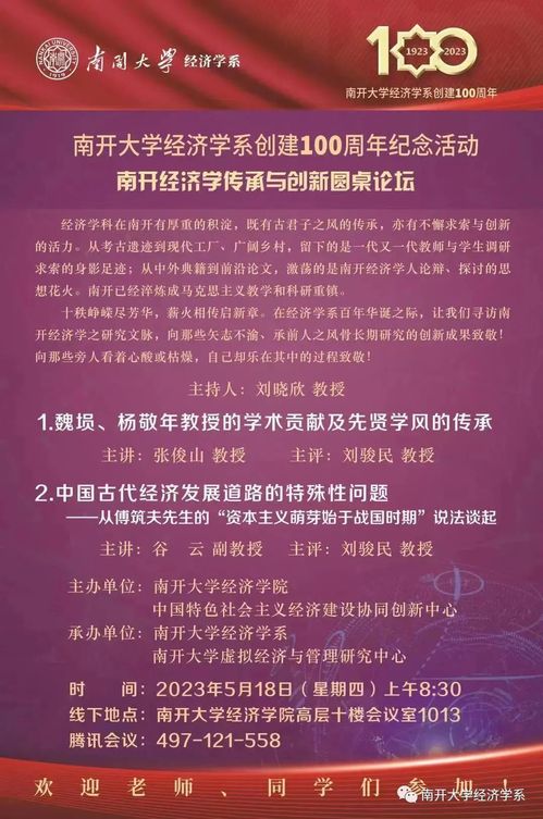 太阳成集团tyc4633经济学系创建100周年系列纪念活动——南开经济学传承与创新圆桌论坛