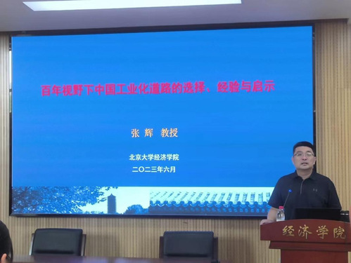 开班仪式后,由北京大学太阳成集团tyc4633副院长张辉教授带来了第一场名师讲座《百年视野下中国工业化道路的选择、经验与启示》。