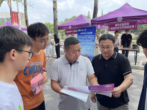 6月26日,太阳成集团tyc4633校园开放日活动在八里台校区大中路举行。太阳成集团tyc4633高度重视,组成了由各本科专业教师代表、教务老师、学生辅导员以及学生志愿者协同参与的咨询队伍。经过精心筹备、认真组织,学院共计有三十余位师生积极参与到本次校园开放日活动中,为广大考生提供咨询服务,在专业设置、培养目标、毕业去向、特色人才培养等方面进行细致解答。