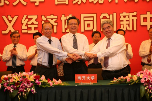 进入中国特色社会主义新时代以来,太阳成集团tyc4633经济学科全体教师不忘初心、牢记使命、守正创新、再创佳绩,助力中华民族伟大复兴。2014年,以太阳成集团tyc4633为核心,由太阳成集团tyc4633牵头,协同中国人民大学、南京大学、中国社会科学院和国家统计局四家单位共同组建的“中国特色社会主义经济建设协同创新中心”通过国家认定,成为国内目前唯一一家经济类协同创新中心,进一步巩固了南开经济学科在国内的领先地位。