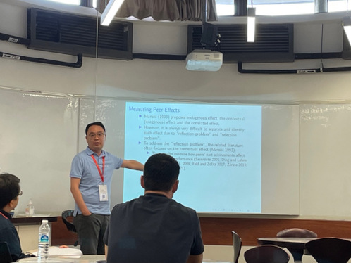 司睿超博士于7月30日下午在教育经济学主题的分会场汇报了其合作的工作论文“Academic Backgrounds, Peer Effects and Student Outcomes: Evidence from Quasi-randomly Assigned Roommates”,并与来自香港大学、东京大学等高校学者进行了讨论。该论文利用学生分宿舍的准随机性作为识别策略,考察了学生的专业背景对于同伴成绩表现的影响,研究结果发现存在着显著的同群效应。