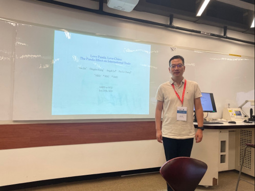 金威博士于7月29日上午在中国国际贸易主题分会场汇报了其与人合作的工作论文“Love Panda, Love China: The Panda Effect on International Trade”,并与新加坡管理大学、上海交通大学、澳门大学等高校的学者进行了讨论。该论文实证检验了中国的“熊猫外交”极大地促进了中国的对外出口。