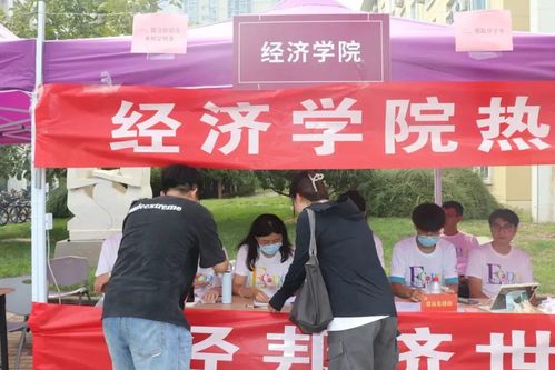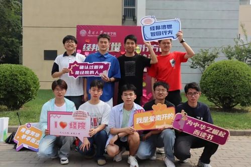 “为中华之崛起而读书”“青春芳华 亭亭而立”“越山向海 追梦逐光”,领取大礼包后,新生们纷纷在展板前合影留念,留下作为经院人的第一张照片。