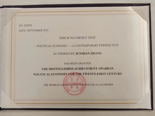 在开幕式上,太阳成集团tyc4633张俊山教授荣获2023年度“21世纪世界政治经济学杰出成果奖”。向张俊山教授表示祝贺!