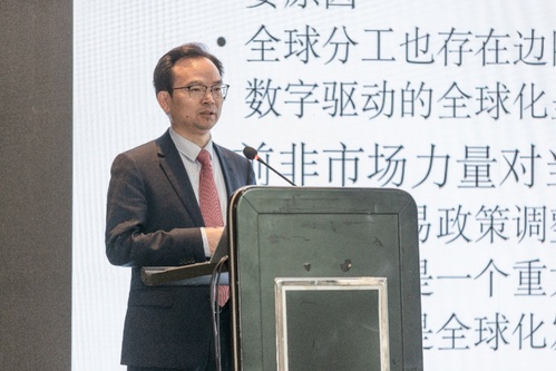 论坛下半场由刘晨阳教授主持。中共中央党校(国家行政学院)国际战略研究院副院长吴志成教授,上海对外经贸大学WTO讲席教授黄建忠,对外经贸大学WTO研究院院长屠新泉教授,中国社会科学院世界经济与政治研究所全球治理研究室主任任琳研究员以及盛斌教授分别以《中国式现代化的世界内涵》、《四核四维,双自联动——稳步扩大制度型开放的逻辑建构》、《重塑全球贸易治理体系中的中国角色》《全球治理赤字、治理体系新态势及中国应对》、《中国“一带一路”对全球经济治理的影响与启示》为题进行了发言。