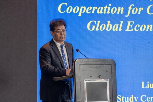 中国国际问题研究基金会副理事长、天津市人民政府外事办公室原主任田贵明在论坛上致辞。他表示,中国式现代化是党领导人民长期探索和实践的重大成果,蕴含着和合共生、和衷共济的丰富文化内涵。在国际视野下探讨中国式现代化与全球经济治理的关系,对于推动构建人类命运共同体具有重要意义。