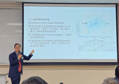 刘刚教授汇报了其工作论文“社会嵌入性和自动驾驶产业化的中国方案”。刘刚教授指出,受技术发展、交通环境、公众认知等现实因素的影响,我国自动驾驶产业化的技术路径选择不仅取决于技术本身,而且取决于我国的具体国情。基于复杂适应系统理论,使用价值网络分析和社会实验研究方法,刘刚教授研究团队认为在技术和社会的相互建构过程中,自动驾驶在高环境嵌入性作用下深度嵌入中国情境,最终形成了以车路协同为中心的智能网联汽车发展道路作为自动驾驶产业化的解决方案。