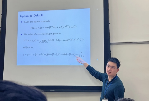 杨嗣强博士于12月15日上午在“Default and Bank Run”主题分会场汇报了工作论文“Nominal Exchange Rate Volatility, Default Risk and Reserve Accumulation”,并与国际货币基金组织的研究员和其他参会学者进行了深入讨论。该论文研究了汇率波动对主权债务借贷与外汇储备积累的影响。