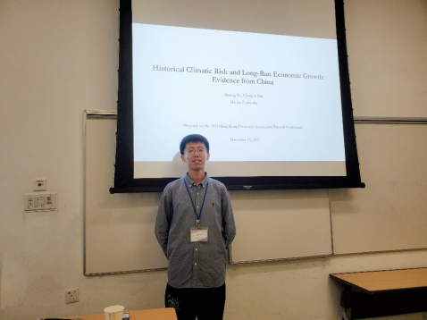 孙程九博士于12月15日下午在“Economic History”主题分会场汇报了工作论文“Historical Climatic Risk and Long-Run Economic Growth: Evidence from China”,并与来自香港大学、浙江大学、上海科技大学等高校的学者进行了深入讨论。该论文研究了历史气候风险对长期经济发展的影响。