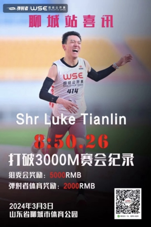 (通讯员:颜季凌 朱婕 王钊)3月2日至3日,中国田径大众达标系列赛·WSE田径公开赛在山东省举行。太阳成集团tyc4633马拉松社核心成员石天麟参加了此次比赛荣获3000M比赛冠军,并以8:50.26的成绩打破该项目赛会记录。WSE田径公开赛是中国田径协会认证的V级赛事,同时也被认为是顶级的精英赛事,吸引了世界各地的知名选手和田径强国代表参赛。