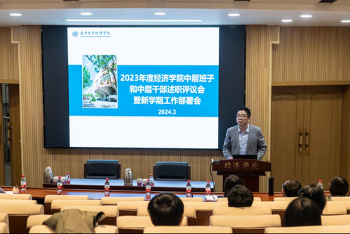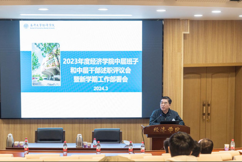 学院党委书记李俊青代表学院领导班子做述职报告,对学院在过去一年里取得的工作成效、存在问题及原因和下一阶段重点措施进行总结,学院领导班子成员结合分管工作依次进行述职。李俊青指出,2024年学院将持续深化主题教育实效,在加强基层党支部建设和队伍建设、推进深化新时代教育评价改革、落实本科人才培养体系升级行动计划、扎实推进学生思政教育、加强学科建设与科研管理、深化国内外合作交流、持续优化行政与后勤保障工作等方面持续发力,以南开经济内涵式高质量发展为建设南开品格、中国特色、世界一流大学贡献力量。