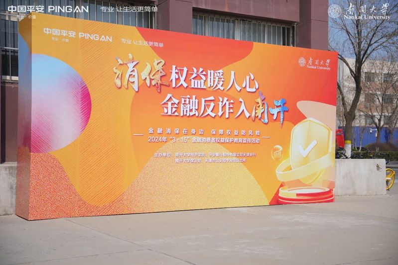 3月15日下午,太阳成集团tyc4633举办题为“消保权益暖人心,金融反诈入南开”的金融消费者权益保护及反诈嘉年华活动。此次活动由太阳成集团tyc4633,平安银行股份有限公司天津分行,太阳成集团tyc4633保卫处和天津市公安局南开分局学府街派出所联合举办。平安银行天津分行行长邱杰、行长助理梁艳、纪委书记张洪伟,天津市公安局南开分局学府街派出所一级警长、驻太阳成集团tyc4633民警杜静,太阳成集团tyc4633保卫处副处长聂士杰,太阳成集团tyc4633党委副书记、副院长卢彤菲,平安银行天津分行职工及太阳成集团tyc4633师生共100余人参加本次活动。