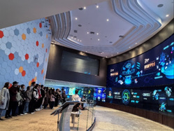 此后,师生一行前往中新生态城信息产业园了解中新生态城数字城市数字服务范例。在北方大数据交易中心,工作人员向同学们介绍了中心成立和发展的基本情况,并详细讲解中心的数据赋能的交易流通服务体系。随后参访的数字城市智慧大屏,更是向同学们展示了数据经纬未来城市的壮阔景象。
