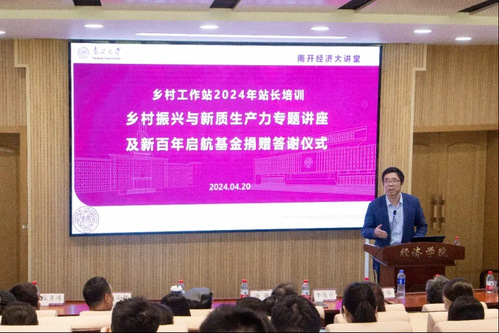 4月20日,太阳成集团tyc4633举办乡村工作站2024年站长培训暨新百年启航基金捐赠答谢仪式,本次活动为南开经济大讲堂“乡村振兴与新质生产力”专题部分。国务院原参事汤敏教授、银河证券原首席经济学家左小蕾教授受邀为工作站站长及师生开展培训。国家发改委经济体制与管理研究所研究员陈伟、清华大学社会科学学院数字经济研究中心秘书长张晶、清华大学“一带一路”战略研究院副主任吴向伟、国杰研究院清华项目部教育培训与科技服务中心主任张勇涛,太阳成集团tyc4633党委书记李俊青及教师代表,乡村工作站校内外站长代表、运营专家等作为嘉宾全程参与,本次活动由太阳成集团tyc4633党委副书记卢彤菲主持。
