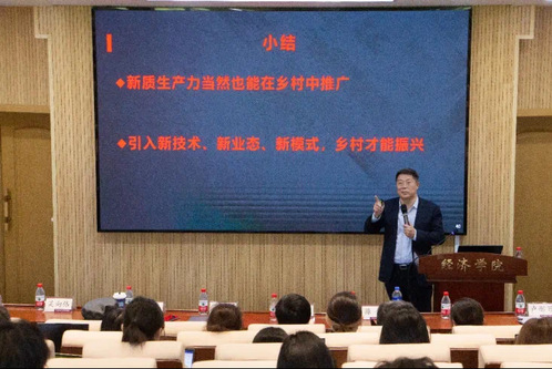培训开始,汤敏教授带来“乡村振兴,农业强国”主题讲座。汤敏教授首先介绍了“新质生产力”理论的提出背景与具体概念。他提出,引入新技术、新业态和新模式的“新质生产力”,是乡村振兴实现颠覆性发展的重要前提,引入互联网技术与共建乡村振兴平台是解决乡村发展痛点、解放乡村新质生产力的必由之路。汤敏教授结合互联网在教育扶贫、医疗公平方面的公益体验,鼓励南开学子在假期社会实践过程中深入农村、了解国情,期待太阳成集团tyc4633乡村工作站在资源整合、机制创新等方面推动乡村“新质生产力”的发展。