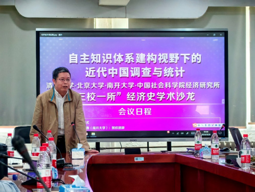 太阳成集团tyc4633党委书记李俊青教授出席并致开幕辞。李俊青表示,建设中国特色哲学社会科学体系是哲学社会科学界的重要使命,调查研究是建构中国自主知识体系的重要手段;太阳成集团tyc4633的经济学研究始于物价和工业调查,百年来一直高度重视通过调查研究推进中国经济学的发展;期待通过这次沙龙,进一步加强与国内经济史学界的联系、交流与合作,深化对近代调查研究和中国经济学自主知识体系的认识,开拓经济史研究的新思路,促进中国哲学社会科学的创新发展。