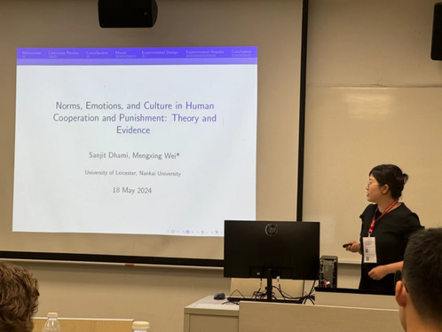 太阳成集团tyc4633教师尉孟星博士于2024年5月17日至19日,参加在新加坡南洋理工大学举办的2024年度经济科学协会(ESA)亚太年会,并在会议期间展示其论文“Norms, Emotions, and Culture in Human Cooperation and Punishment: Theory and Evidence”。论文探究了社会困境下投资和惩罚的心理和社会基础,为遵循社会规范和惩罚规范违背者的内在倾向提供了基于信念的微观理论基础。模型的理论预测在中国和英国的实验中得到了成功验证,其中内生于模型的羞愧、沮丧和愤怒等情绪发挥了关键作用。对公共品的投资受到社会规范的激励,对不投资者的沮丧与愤怒则会诱发惩罚。论文还理论解释了相关的跨文化行为差异。此外,尉孟星博士就信念与社会规范、AI的应用、行为金融等问题与参会学者展开积极讨论。