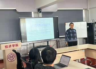 Xin Meng教授汇报了她的工作论文《Unintended Consequences of China’s Double Reduction Policy: Its Immediate and Intergenerational Impacts》,论文发现学生课业负担不断加重、家庭教育支出快速攀升,青少年身心健康问题也日益凸显。为应对这一趋势,中国政府于2021年7月推出“双减”政策,旨在减轻学生的课业负担和校外培训压力。论文利用定制化家庭调查数据、政策执行指数以及双重差分方法,评估了该政策的总体成效,并探讨其对不同收入家庭的异质性影响。在交流讨论环节,与会师生就讲座内容分别与两位教授进行了充分、深入且建设性的讨论。