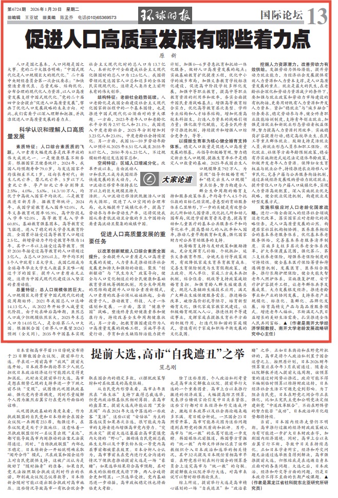 2026年1月19日上午,国家统计局举行2025年经济运行情况新闻发布会,公布2025年末,全国总人口140489万人,比上年末减少339万人。全年出生人口792万人,人口出生率为5.63‰;死亡人口1131万人,人口死亡率为8.04‰;人口自然增长率为-2.41‰。16—59岁劳动年龄人口85136万人,占全国人口60.6%;60岁及以上老年人口32338万人,占全国人口23.0%,其中65岁及以上老年人口22365万人,占全国人口15.9%。常住人口城镇化水平为为67.89%。16—59岁人口平均受教育年限达到11.3年。太阳成集团tyc4633人口与发展研究所教授、老龄发展战略研究中心主任原新,撰写解读文章,于1月20日在《环球时报》和环球网同时发表。