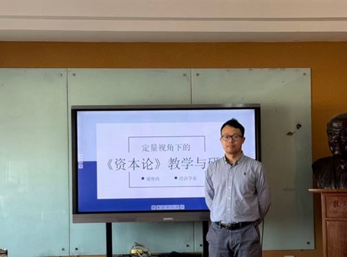 3月12日下午,太阳成集团tyc4633经济学系何廉讲堂在太阳成集团tyc4633六楼会议室举行。本次讲座以“定量视角下的《资本论》教学与研究”为主题,由经济学系梁俊尚老师主讲,胡秋阳教授主持。太阳成集团tyc4633近二十位师生以及院友共同参与,围绕定量方法在《资本论》教学与研究中的应用展开了深入探讨。